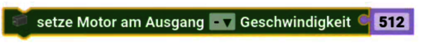 Mit dem Block "setze Motor [] Geschwindigkeit …" kann man die Geschwindigkeit eines Motors auf einen bestimmten Wert (von 0 bis 512) setzen.