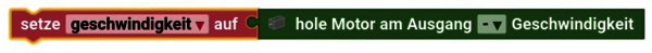 Mit dem Block "hole Motor [] Geschwindigkeit" lässt sich die Geschwindigkeit eines Motors abrufen und als Wert weiterverarbeiten.