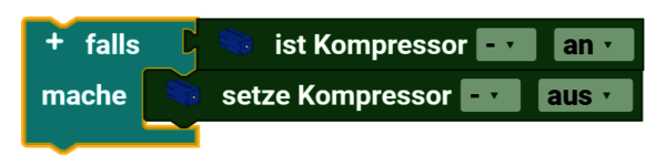 Mit dem Block "ist Kompressor [] []" kann man die Aktivität eines Kompressors als Bedingung nutzen.